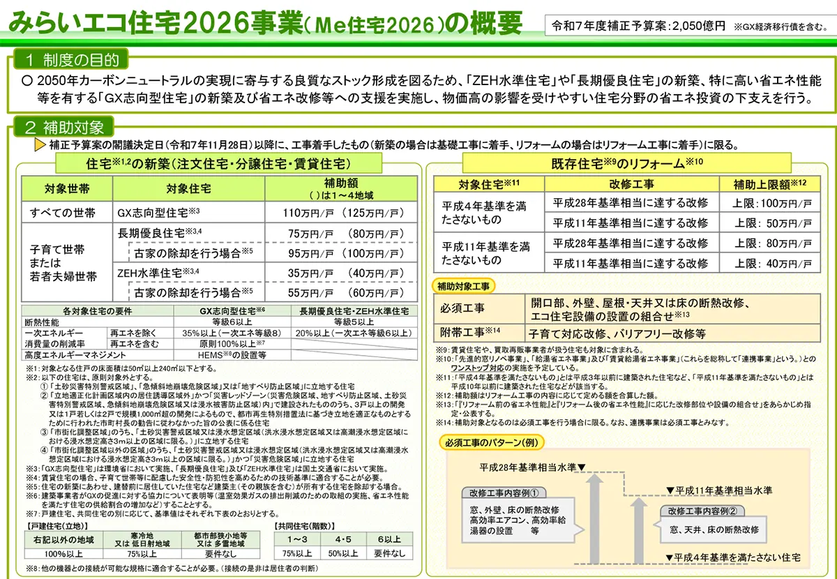 【2026年最新版】みらいエコ住宅2026事業とは?新築・リフォーム補助金をわかりやすく解説