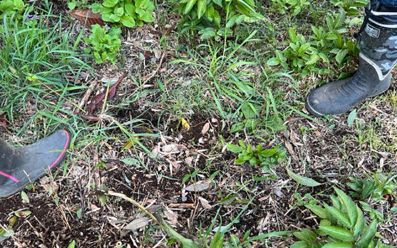 奥様が鍬で掘っていただき、20センチくらいでした。