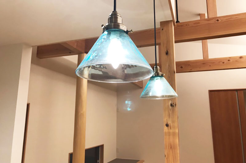 キッチンにはガラスのペンダント。