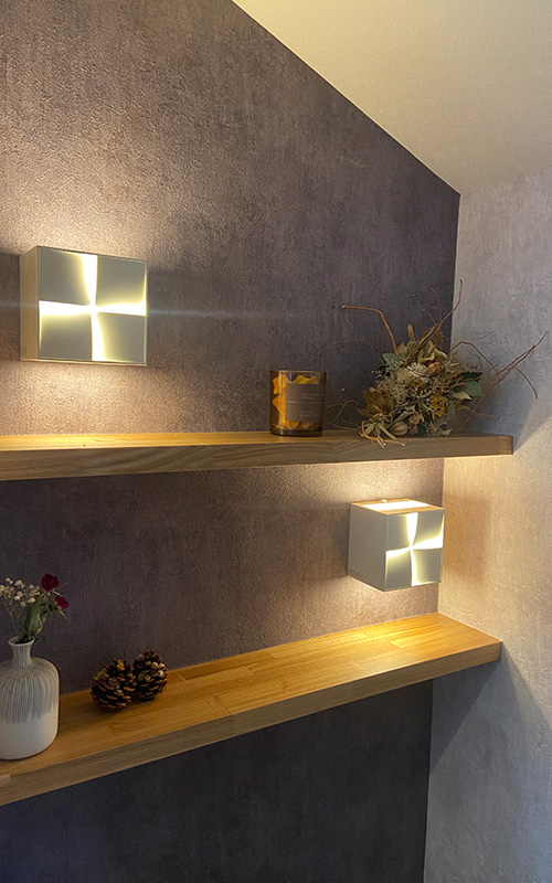 他にも壁のニッチやトイレなど、いたるところにドライフラワーが飾られていて、レンガ調の床との相性も良く、N様の色に染まった素敵なお家になっていました。