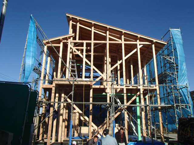 上棟時は完成してからは隠れてしまう、構造の柱、梁、土台等が見れるチャンスです。