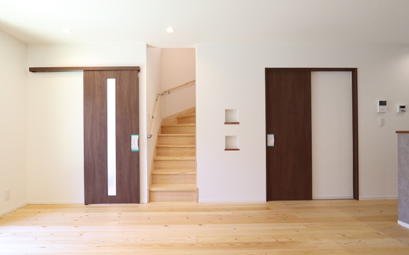リビングには、縦に並べたニッチがあり、壁のアクセントになっていますね。